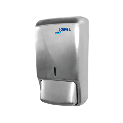Dosificador de Jabón Espuma. Base gris, Pulsador y Tapa en acero inox. Además la tapa tiene una ranura en el centro para ver consumo de jabón. Indicado para W.C. públicos de alta rotación.
